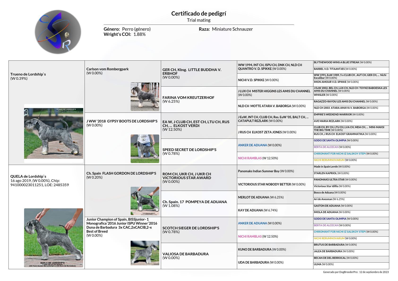 Camda «T-23» Trueno de Lordship’s & Quela de Lordship’s En las fotos tienen 5 y 1 año, actualmente 9 y 2, proximamente subiremos fotos actualizada GENETICS TEST Fecha de nacimiento : 11 de Agosto de 2021 Consanguinidad y Pedigree de la camada Comparte esto: Email a link to a friend (Se abre en una ventana nueva) Correo electrónico Compartir en Facebook (Se abre en una ventana nueva) Facebook Share on LinkedIn (Se abre en una ventana nueva) LinkedIn Compartir en WhatsApp (Se abre en una ventana nueva) WhatsApp Me gusta Cargando...