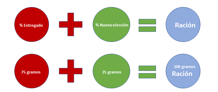 Ejemplo grafico y ejemplo para una ración diaria de 100 gramos durante los días 3y 4.