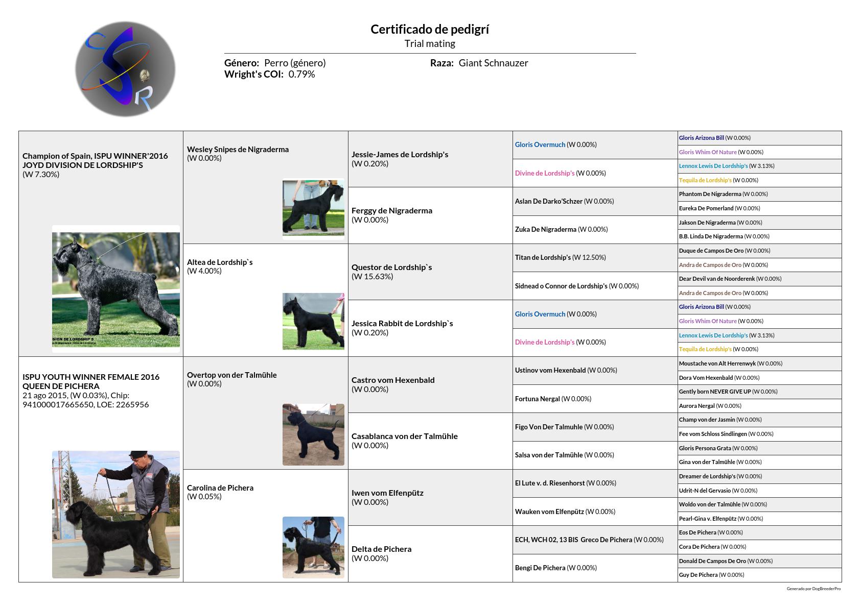 (Ch. Spain. ISPU WINNER’2016 JOYD DIVISION DE LORDSHIP’S & ISPU YOUTH WINNER FEMALE 2016 QUEEN DE PICHERA )