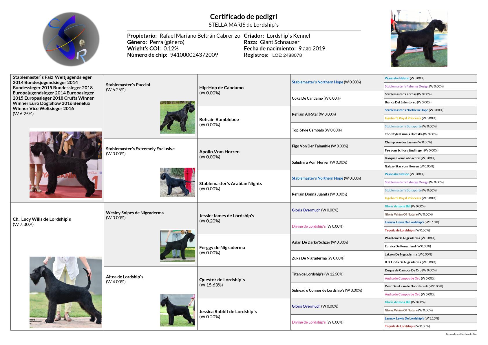 - MP 2ª. Monográfica Nacional de Cria de Club Español del Schnauzer 14/12/2019. Jueces: Msr. Christine Rossier